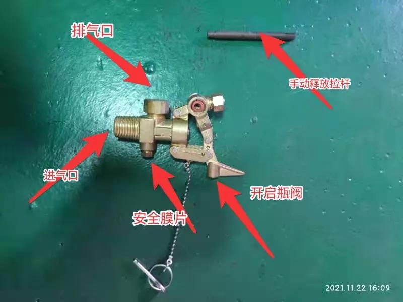 手動(dòng)釋放過程的錯(cuò)誤(與遙控釋放相同的在這里不再贅述):應(yīng)特別提及打開瓶頭閥需要用到手動(dòng)釋放拉桿。