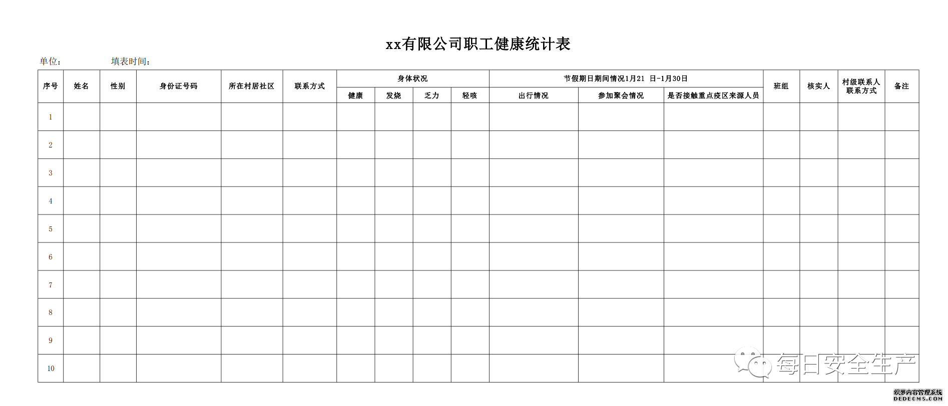 必須排查每名職工假期期間流動(dòng)信息情況;