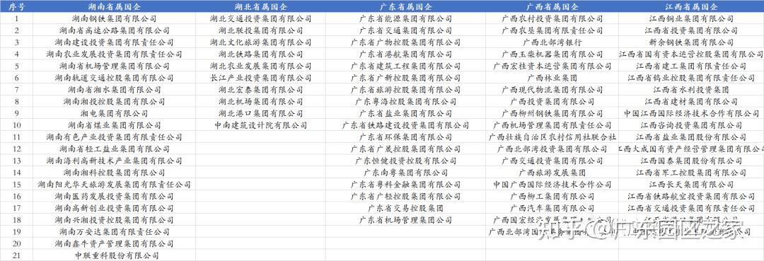 湖南、湖北、廣東、廣西及江西,這5個(gè)省份及省級(jí)行政區(qū),共設(shè)立了87家省屬國企。其中湖南省21家、廣東省18家、廣西省19家、江西省19家。
