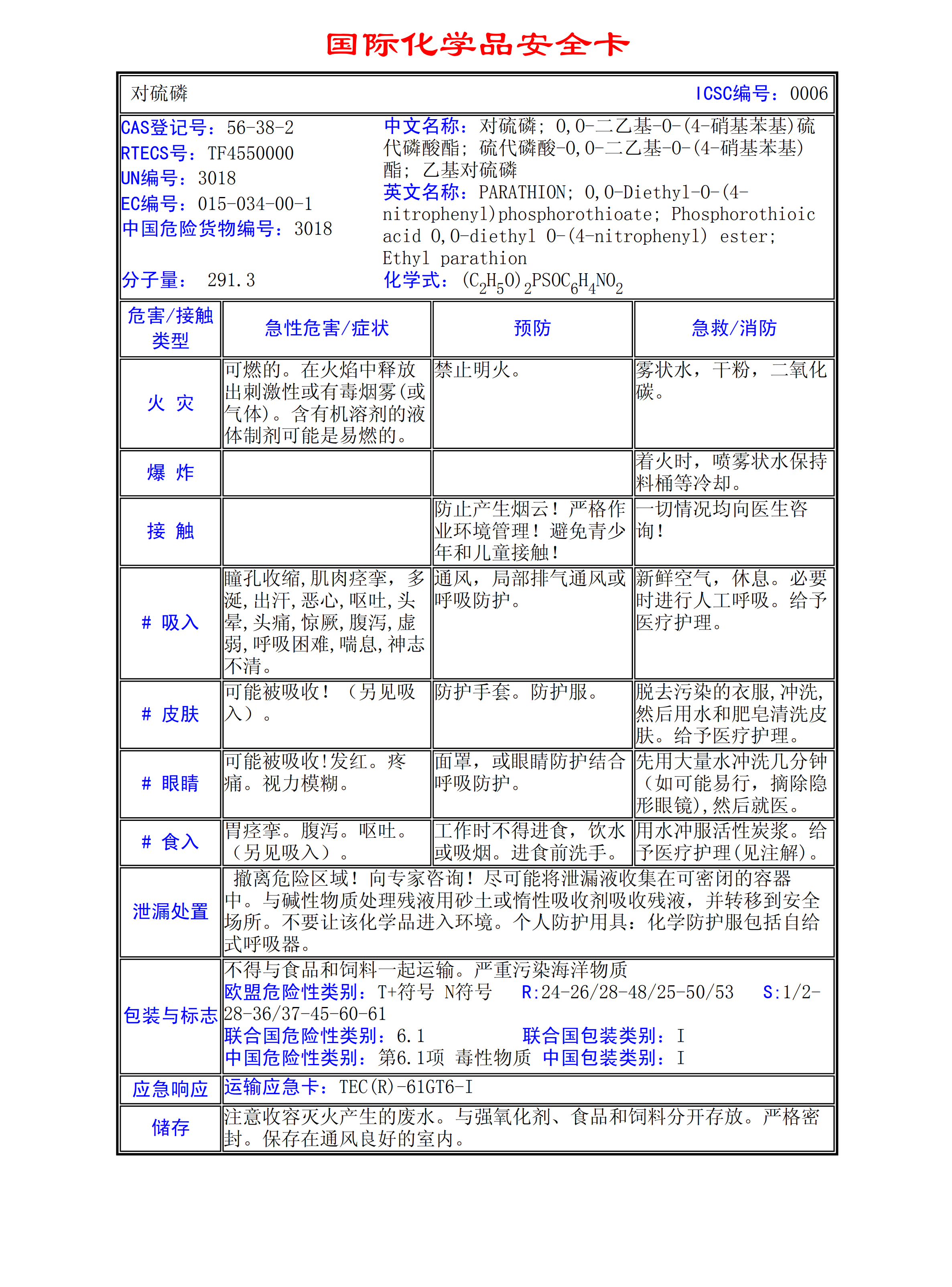 對(duì)硫磷MSDS