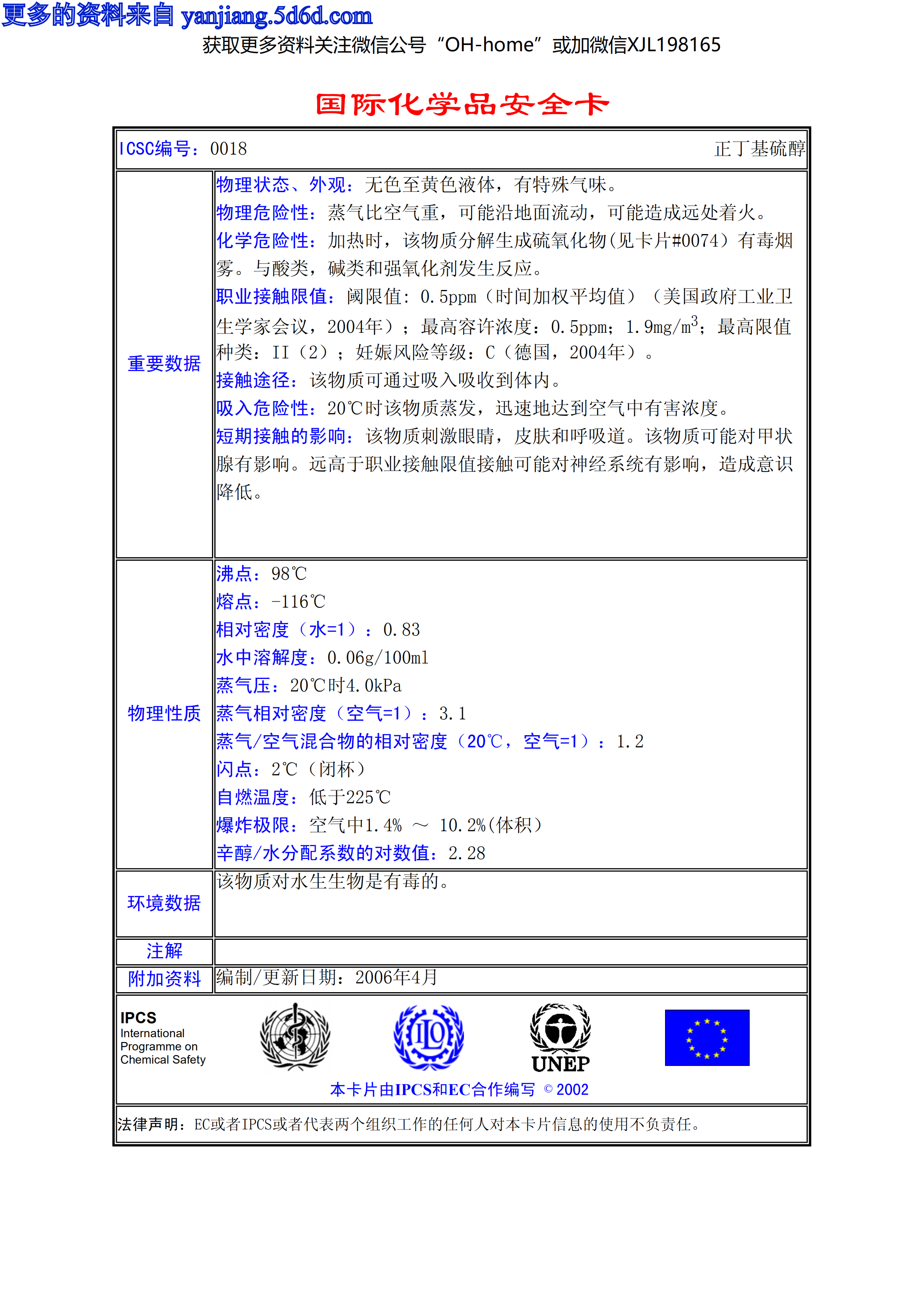 正丁基硫醇MSDS