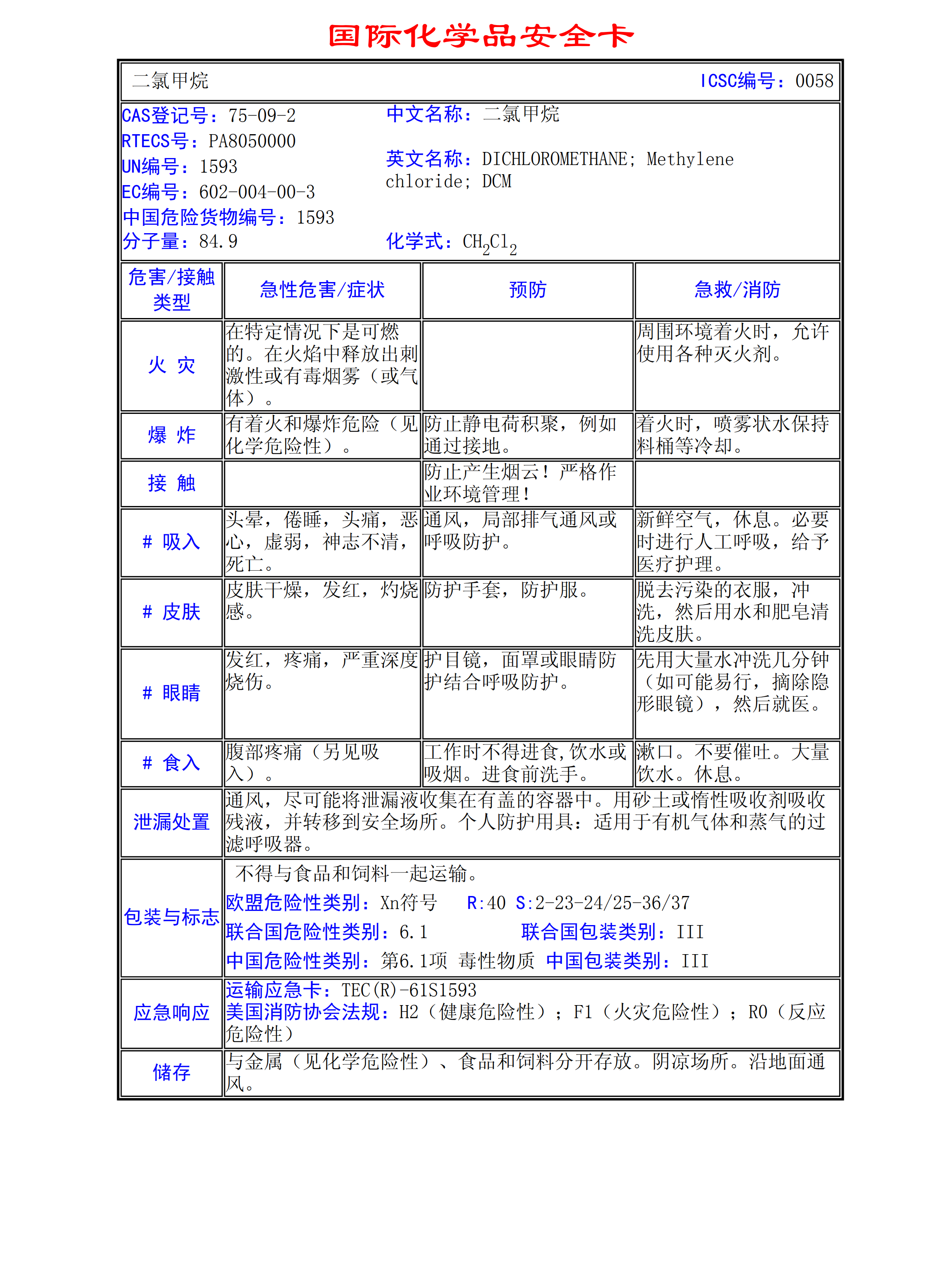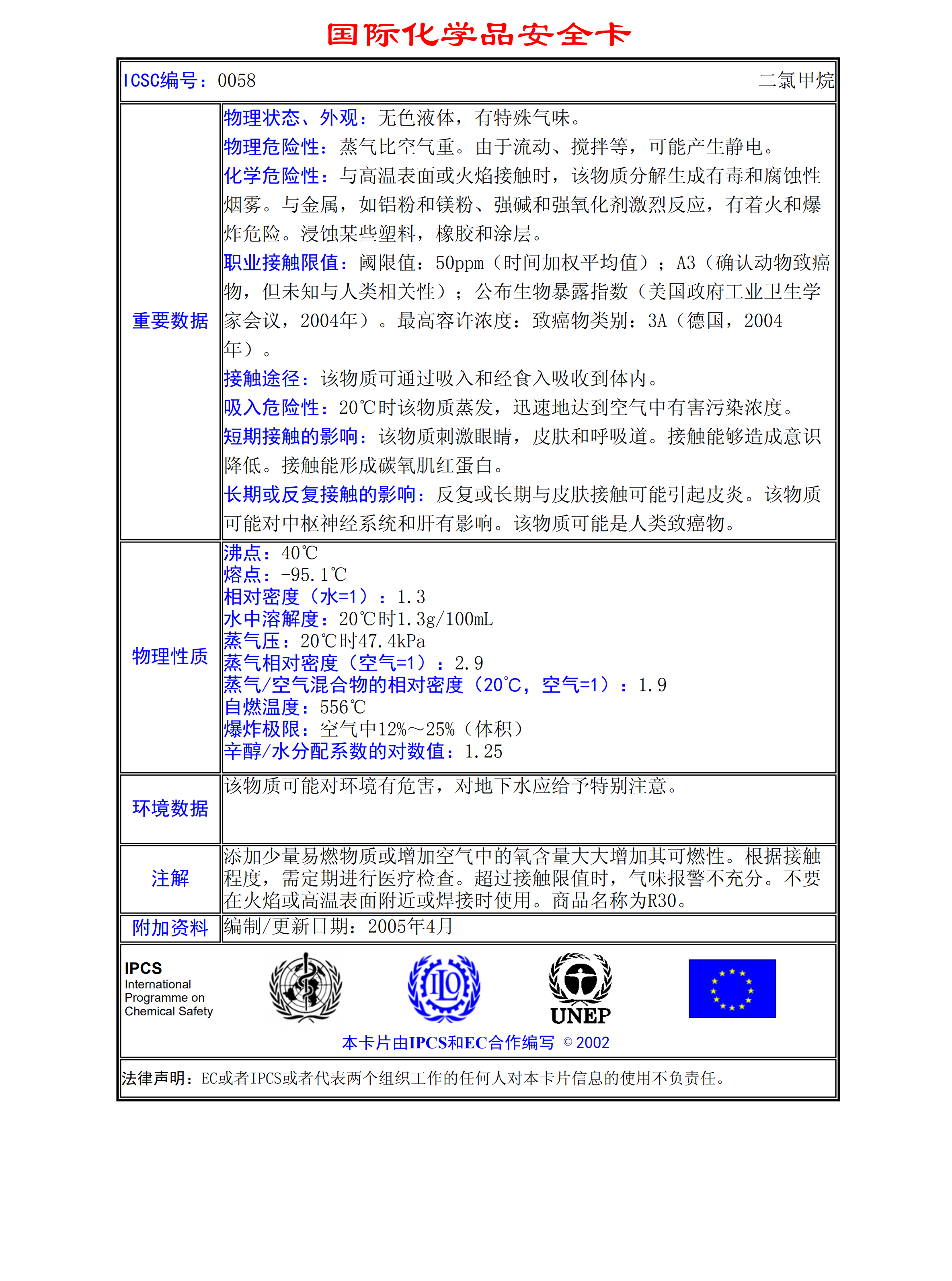 二氯甲烷MSDS
