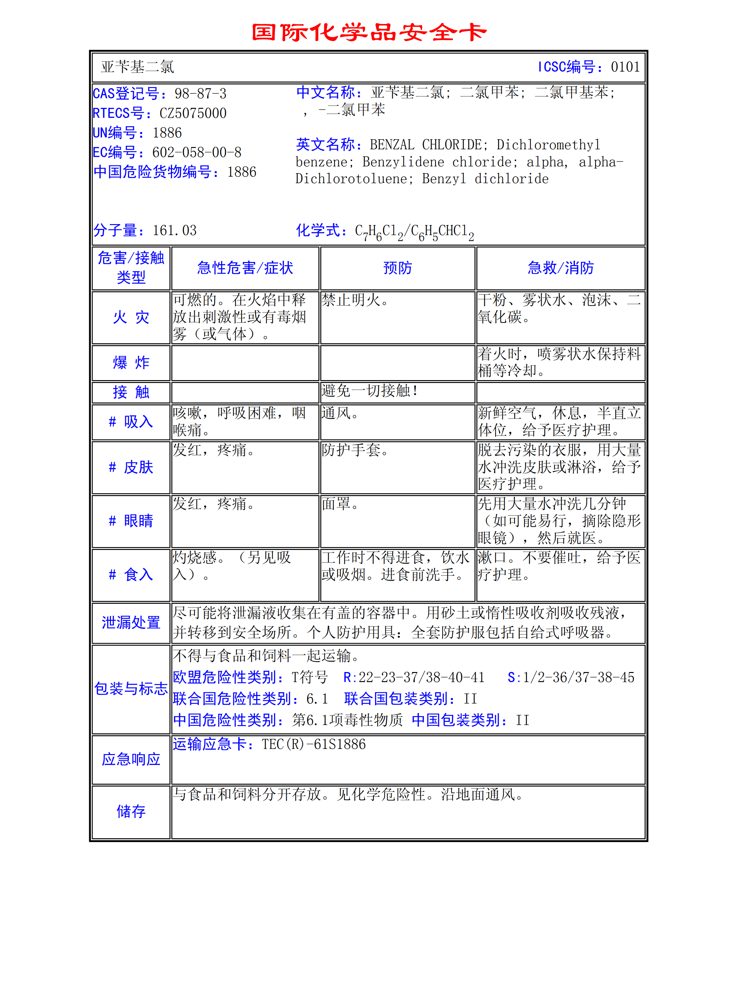 亞芐基二氯MSDS