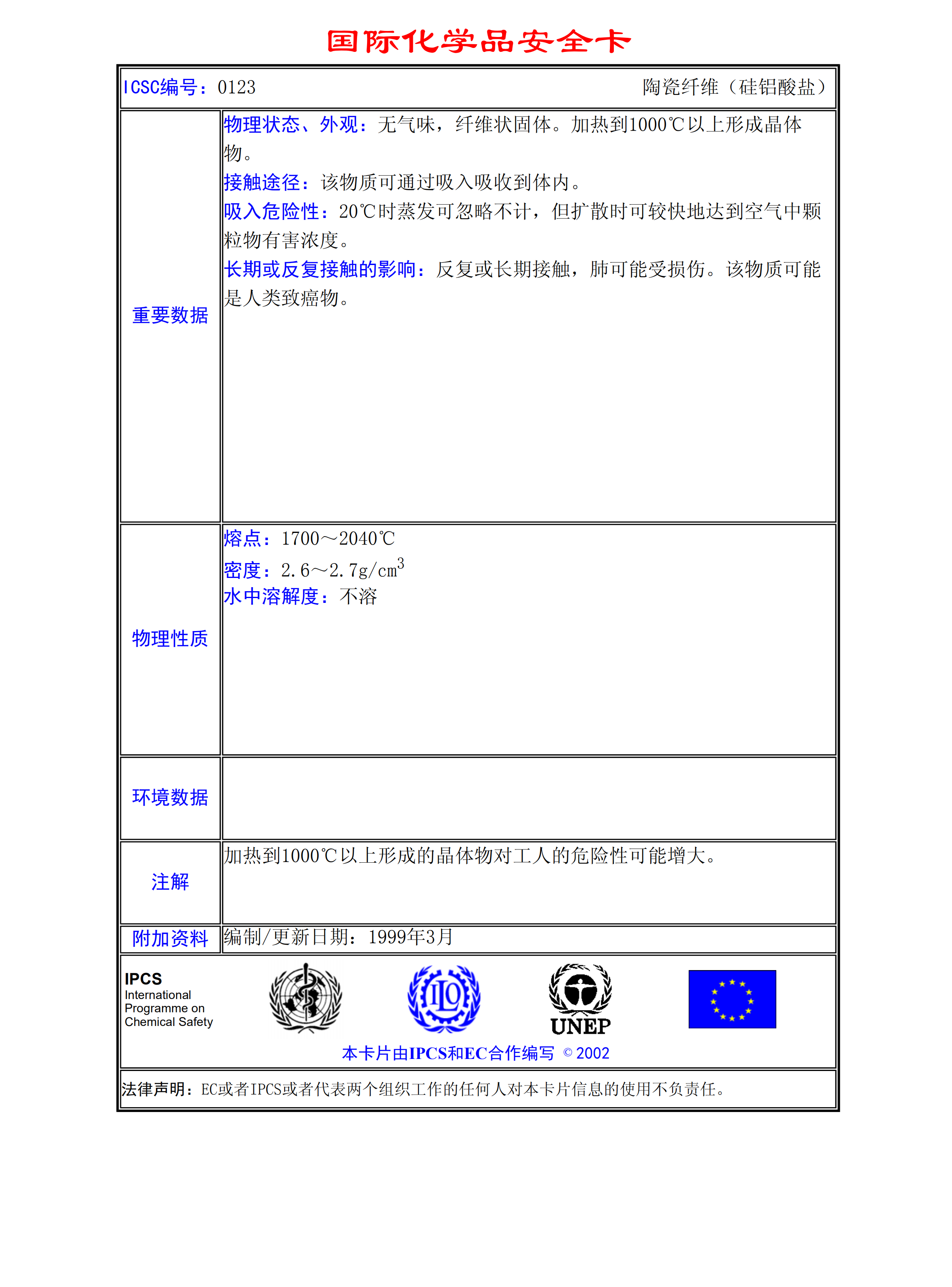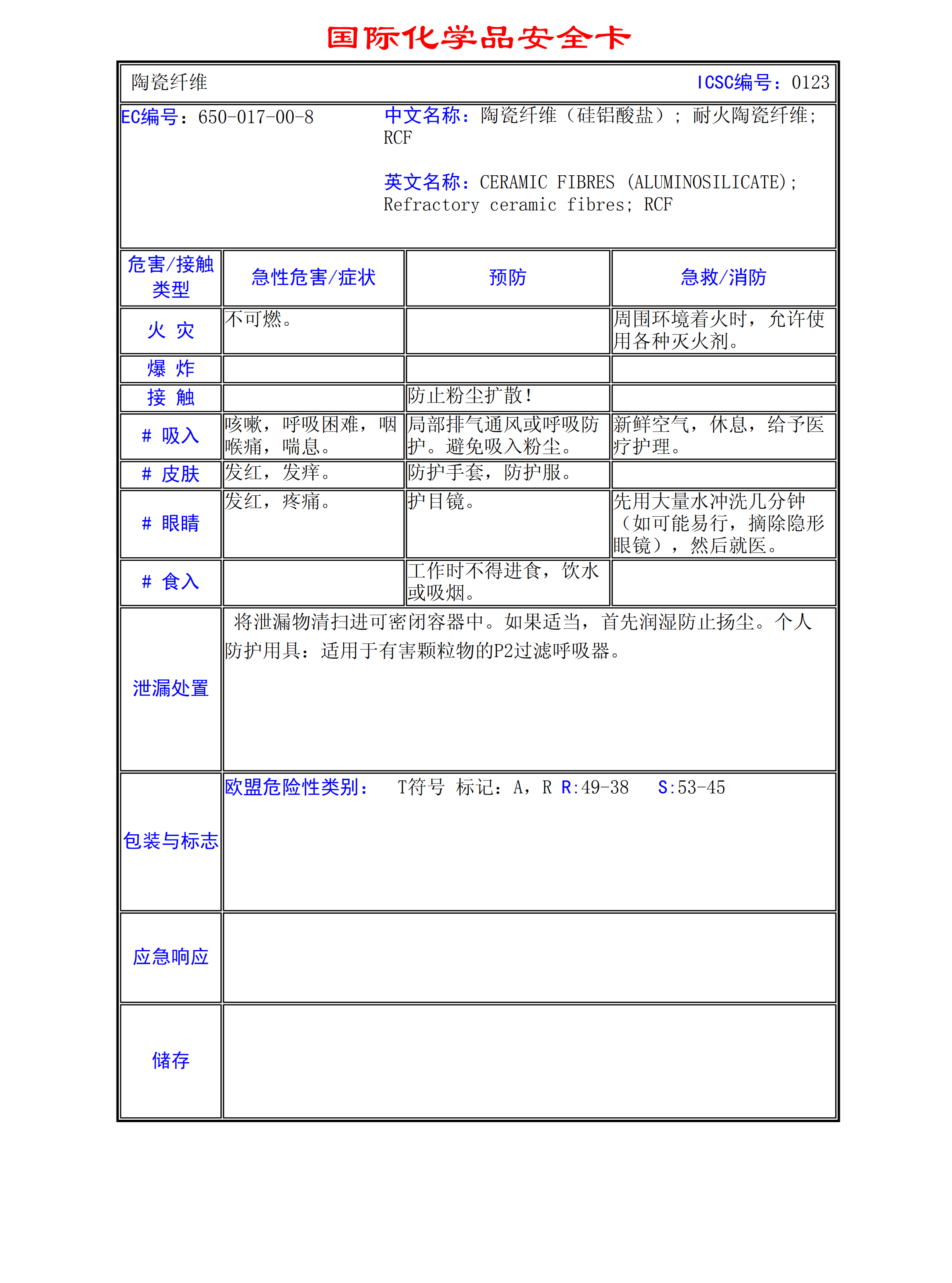 陶瓷纖維MSDS