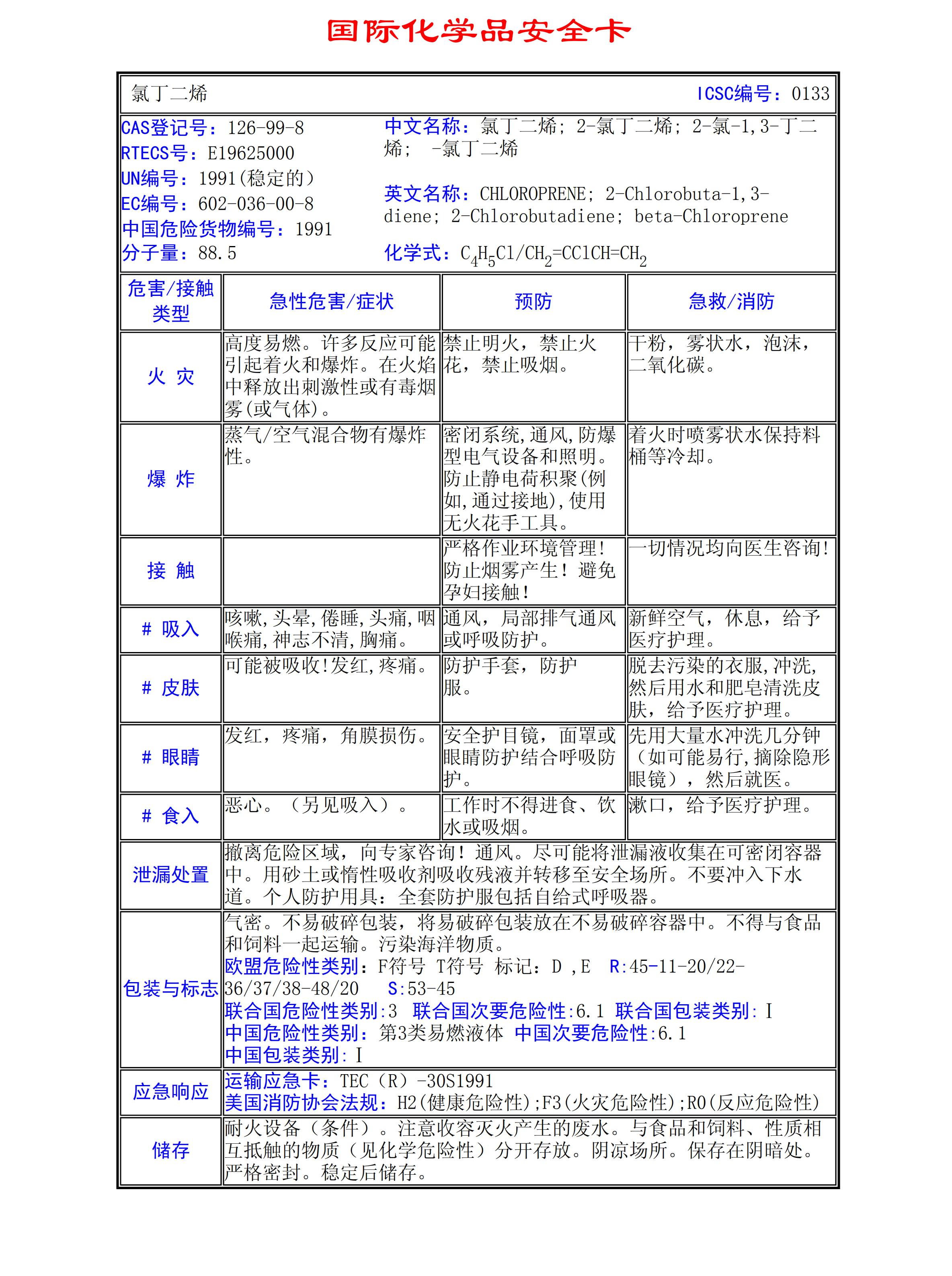 氯丁二烯MSDS