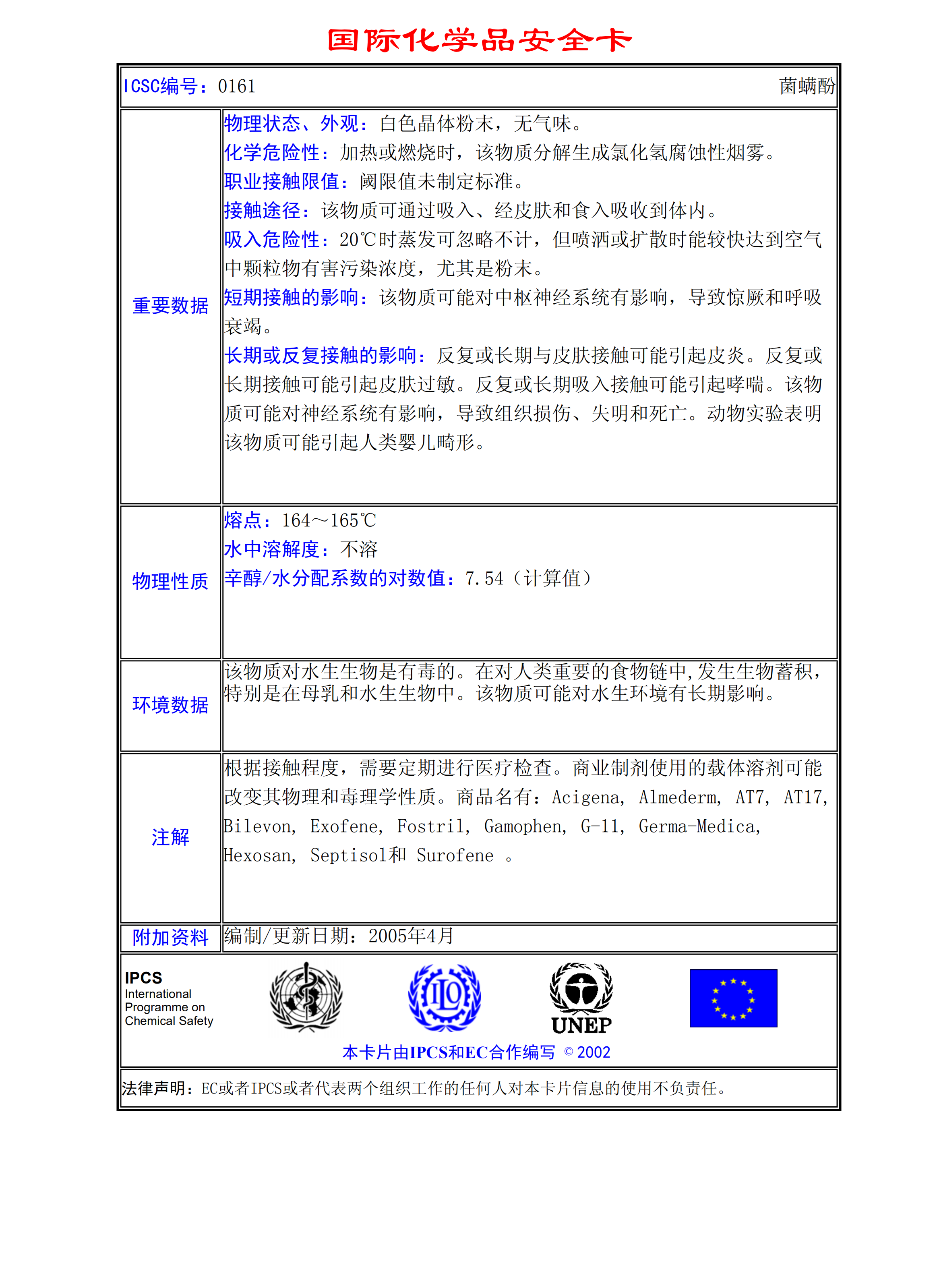 菌螨酚MSDS