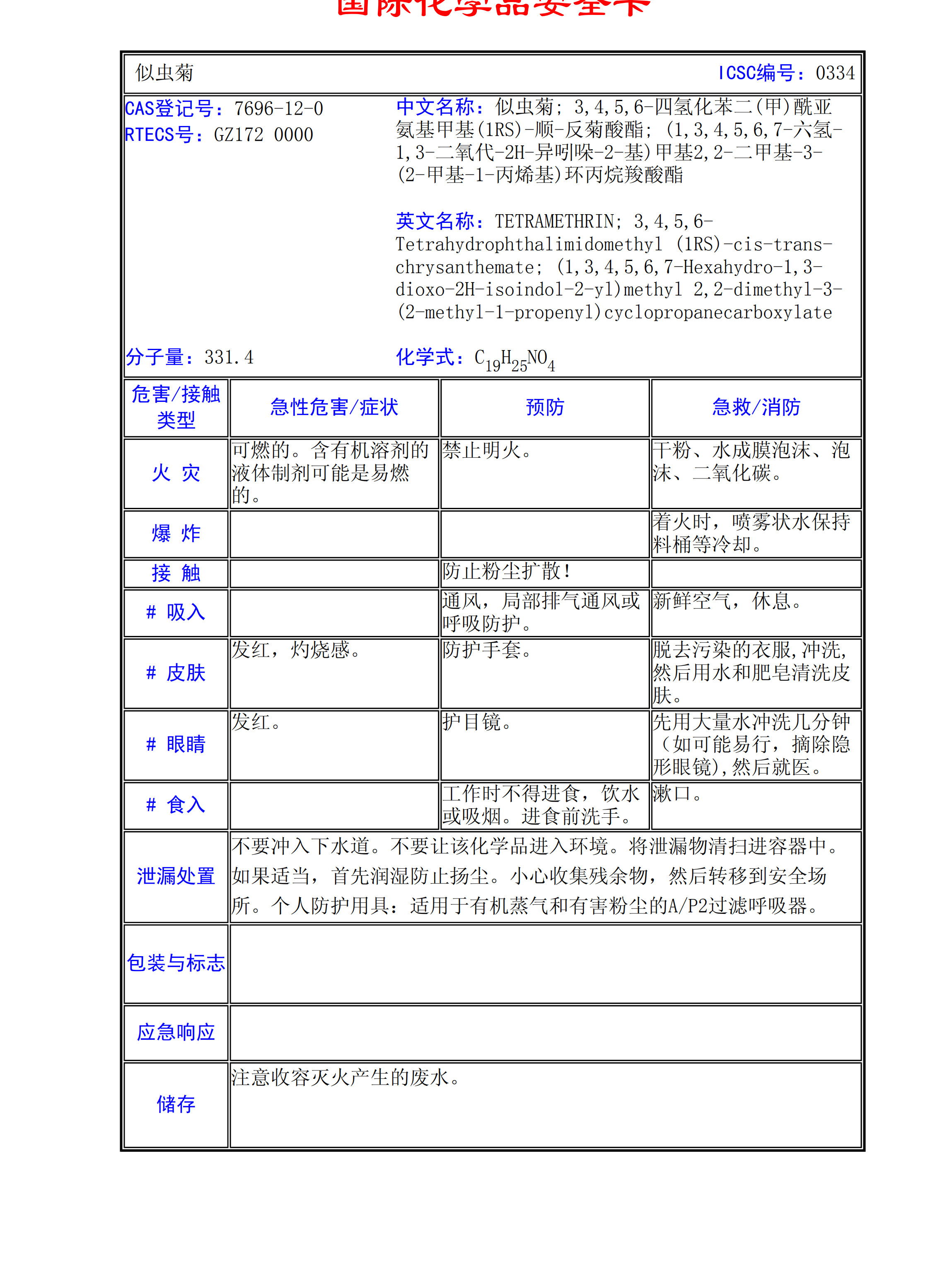 似蟲菊MSDS