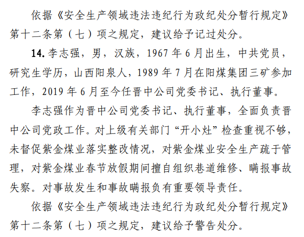 紫金煤業(yè)礦長等5人被公安機關采取刑事強制措施。