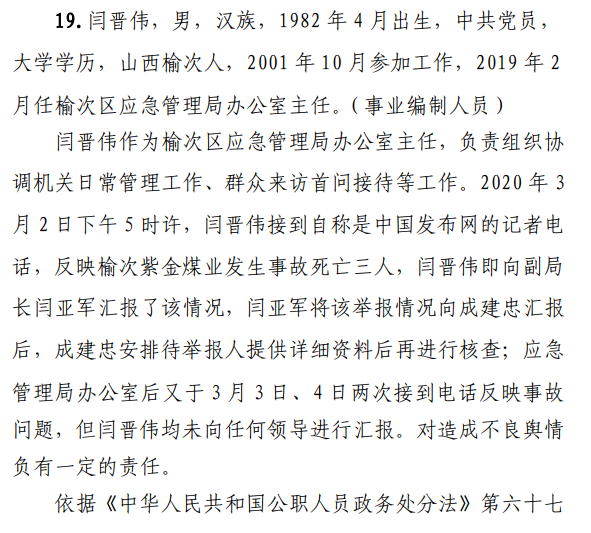 近日,山西煤礦安全監(jiān)察網(wǎng)發(fā)布該起事故調(diào)查報告顯示:事故發(fā)生后,礦方蓄意瞞報。后經(jīng)媒體披露,晉中市榆次區(qū)人民政府組織核查,于3月8日查實本起事故。
