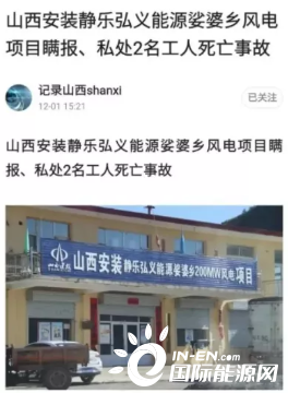 從媒體報道,山西安裝靜樂弘義能源娑婆鄉(xiāng)200MW風(fēng)電項目,于2021年1月18日發(fā)生一起2名工人在幸村鄉(xiāng)標(biāo)段作業(yè)途中傷亡事故。該項目部并未向上級政府部門上報,私自隱瞞處理此事。