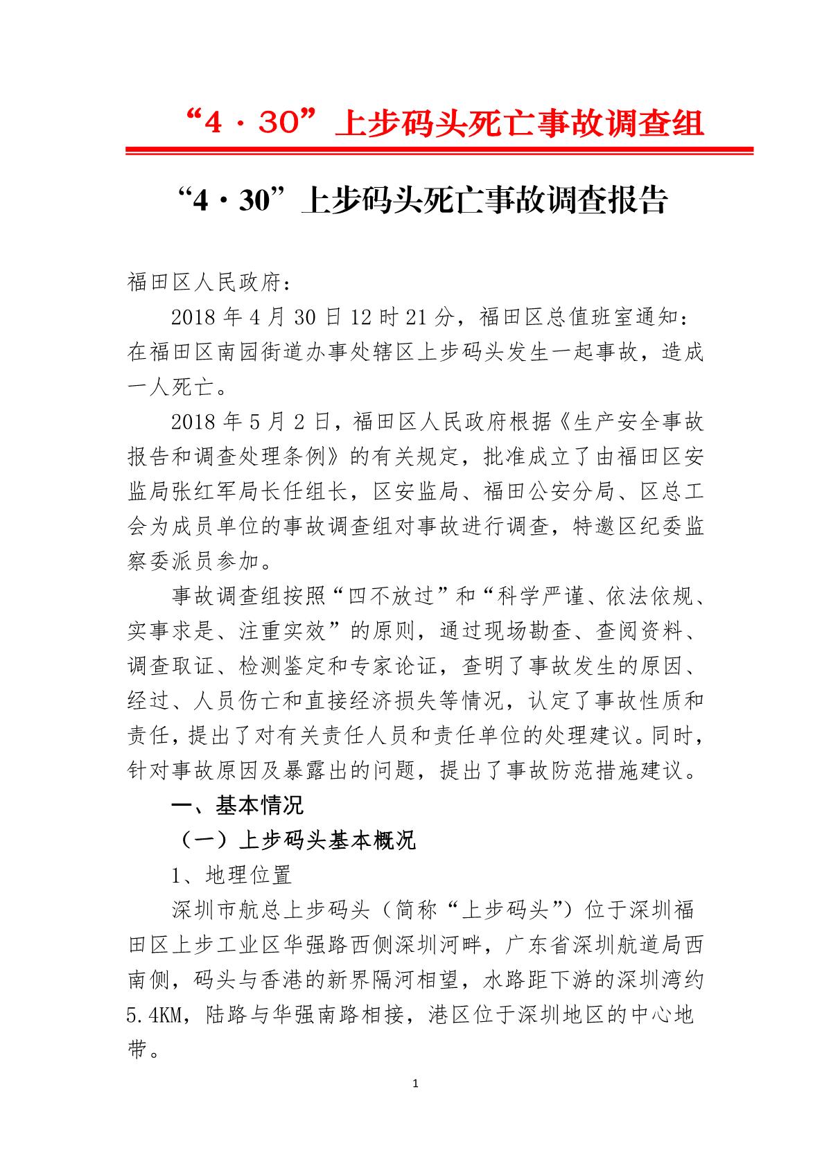 “4.30”上步碼頭死亡事故調查報告