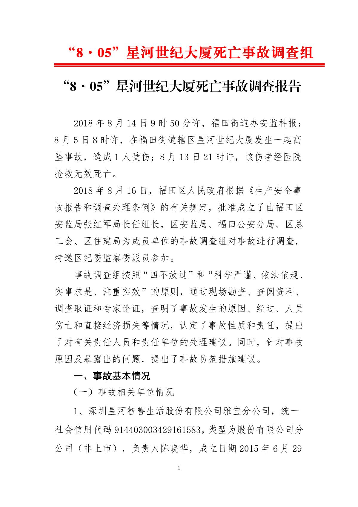 “8.05”星河世紀(jì)大廈死亡事故調(diào)查報告