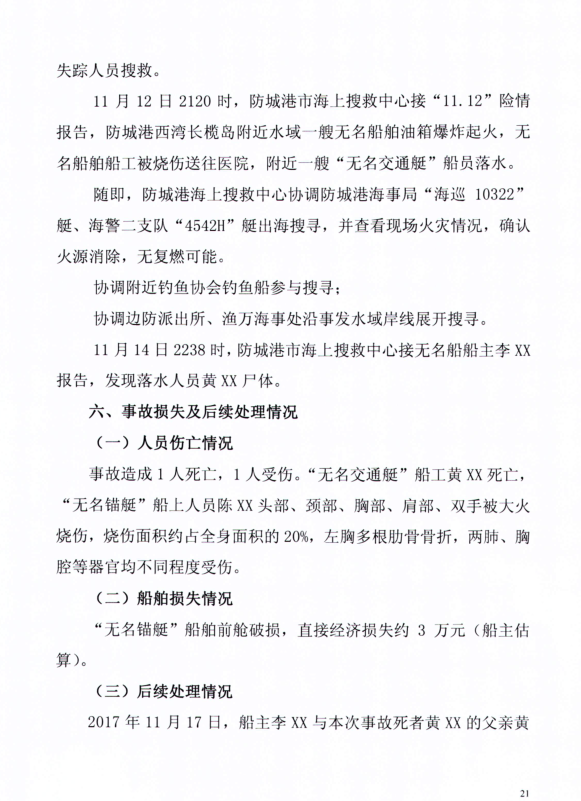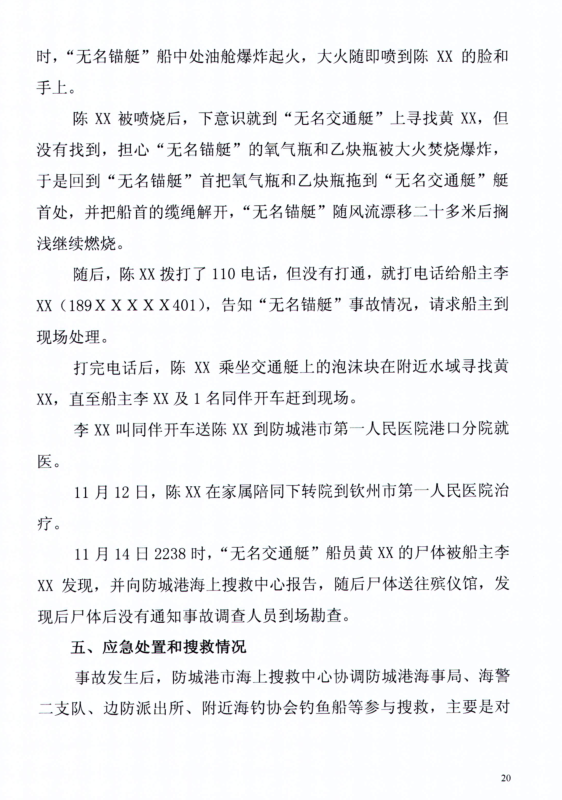 防城港“11.12“無(wú)名船舶爆炸事故調(diào)查報(bào)告